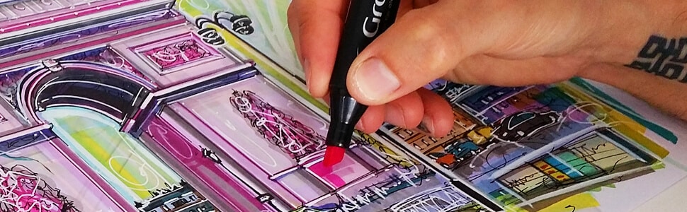 Les marqueurs à l’alcool présentent un autre avantage : la plupart possède deux mines, une large et une fine. Ainsi, vous serez parfaitement équipé pour réaliser des aplats et travailler les détails de votre dessin.
